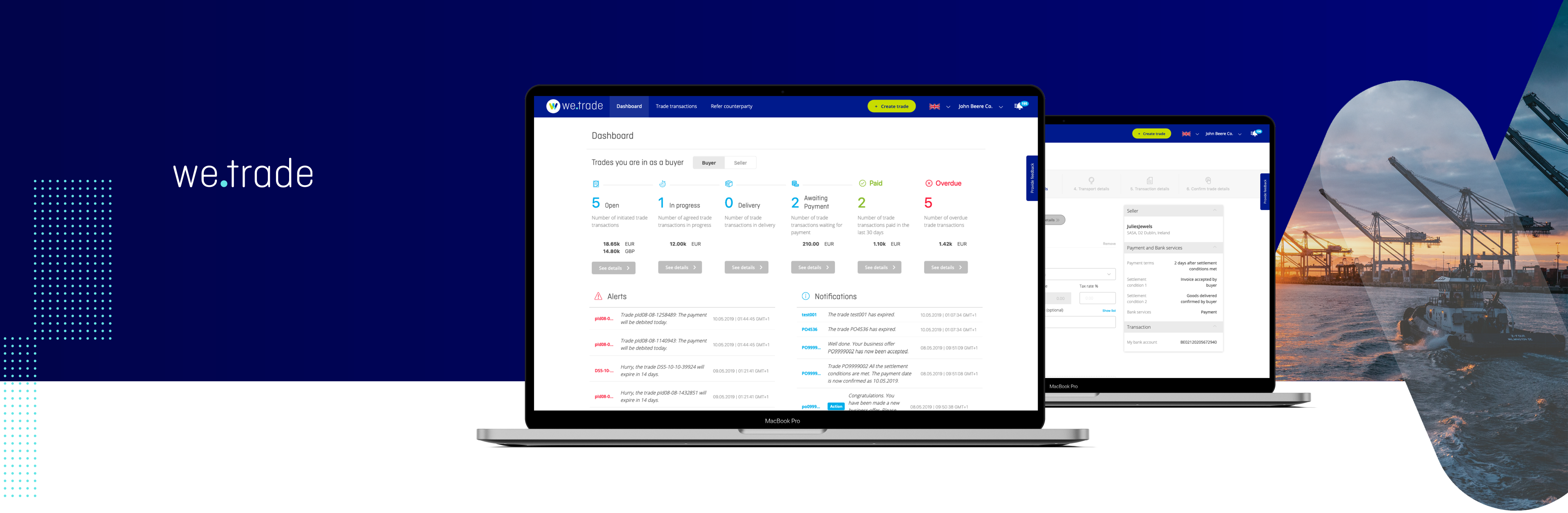 we.trade is an enterprise-grade blockchain-enabled trade finance platform co-owned by IBM that optimises trading potential between counterparties using smart contracts and distributed ledger technology.